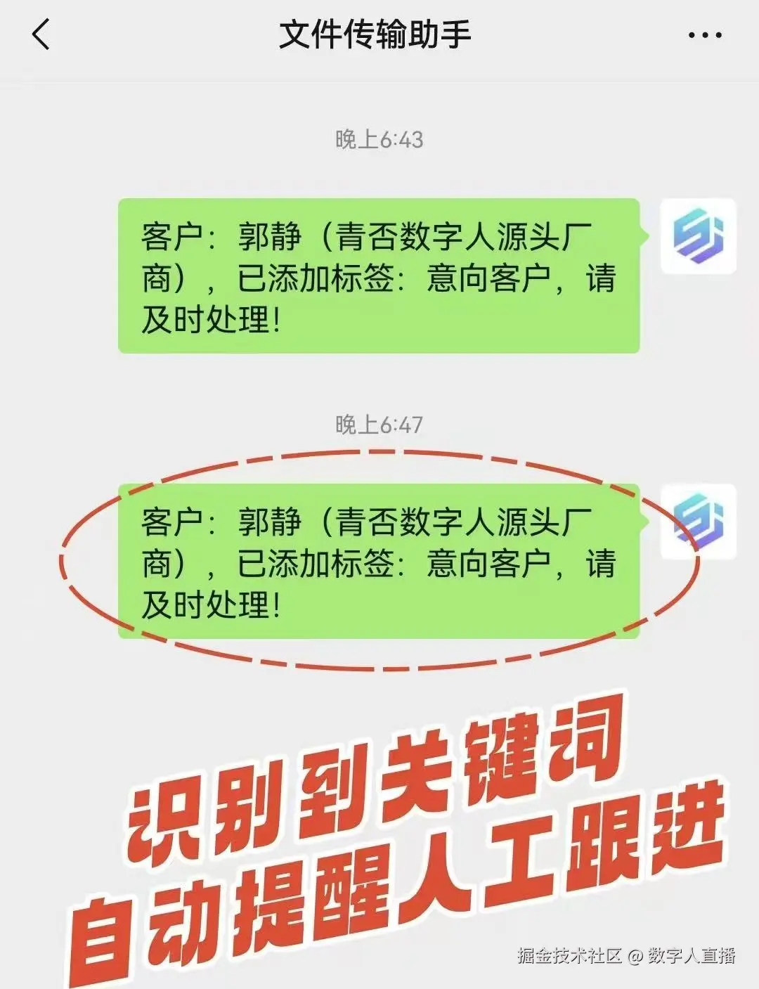 青否AI超级员工更新微信客户消息触发关键词自动改客户标签,并自动提醒人工跟进高意向客户!