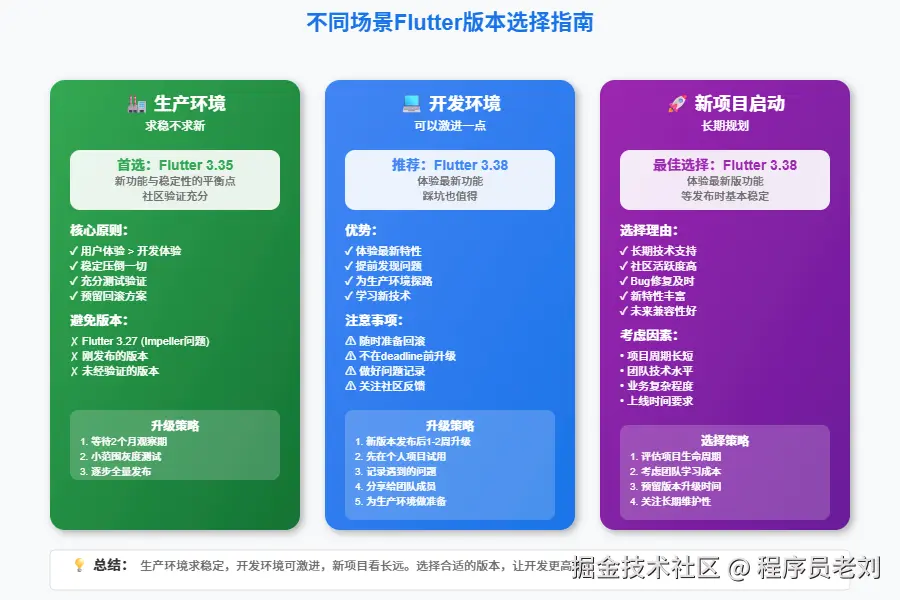- 策略:本地用3.38开发,CI/CD打包机暂时保持3.35(需注意API兼容性,避免使用3.38独有的API)。注:如果API有差异,建议本地也回退到3.35以保一致性,或者使用FVM管理多版本。