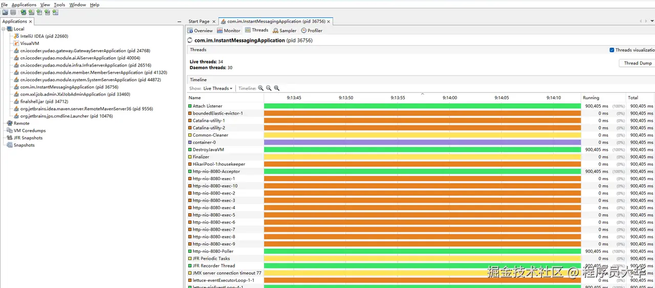 - 黄色:等待 (WAITING, TIMED_WAITING)