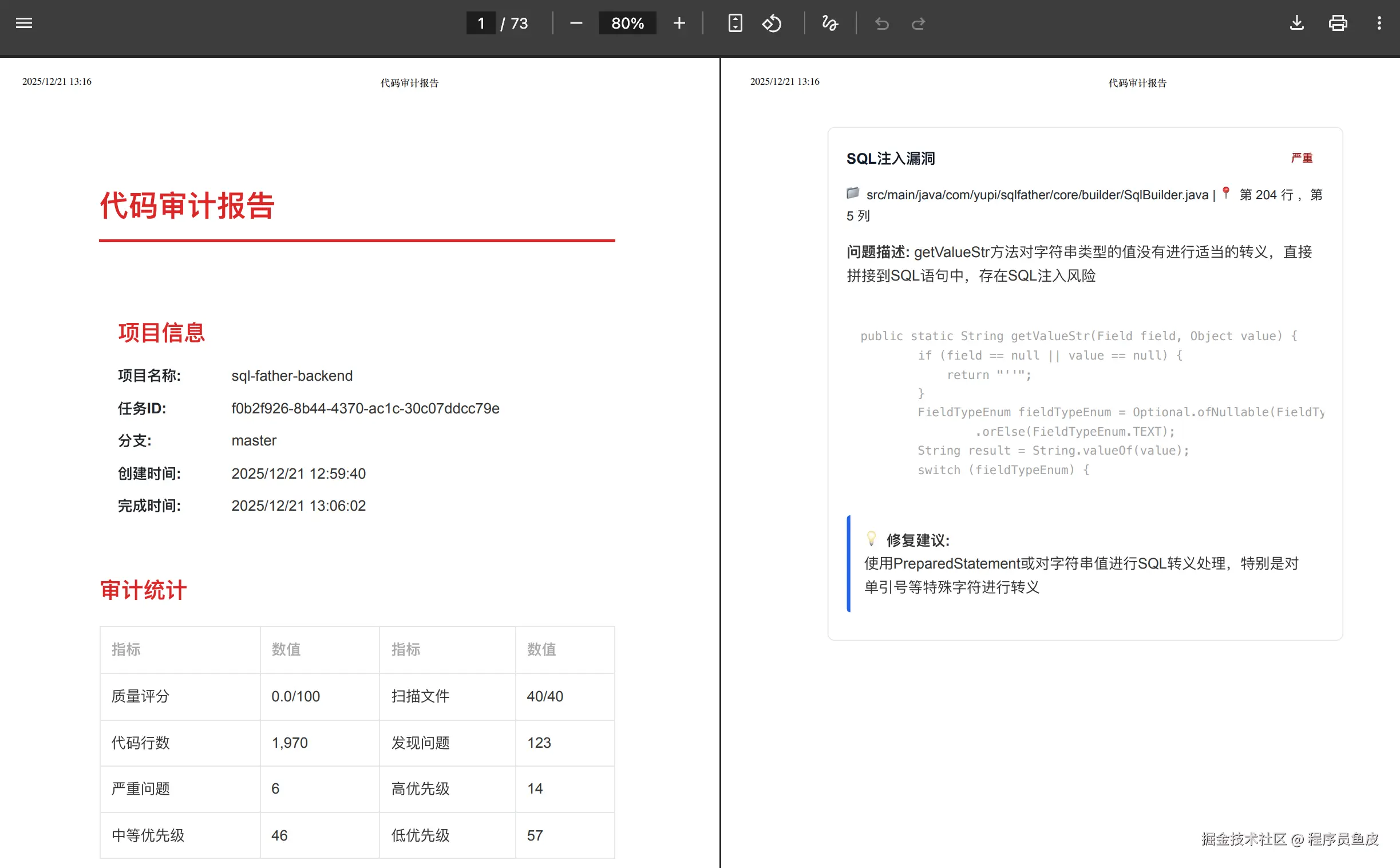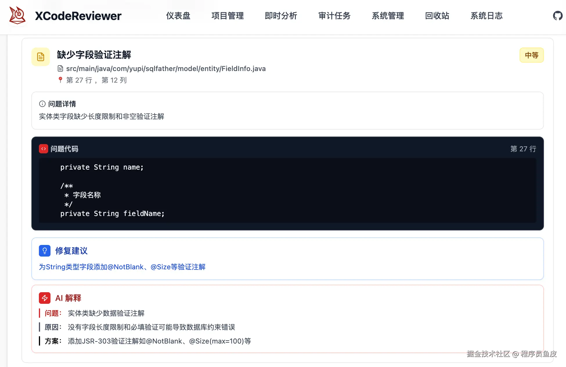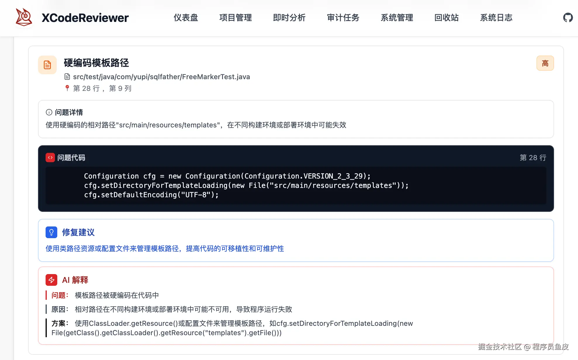 一些小细节也被指出来了,比如硬编码、异常处理不够完善、日志记录不规范等。