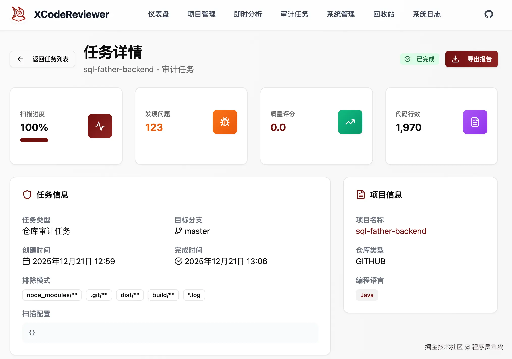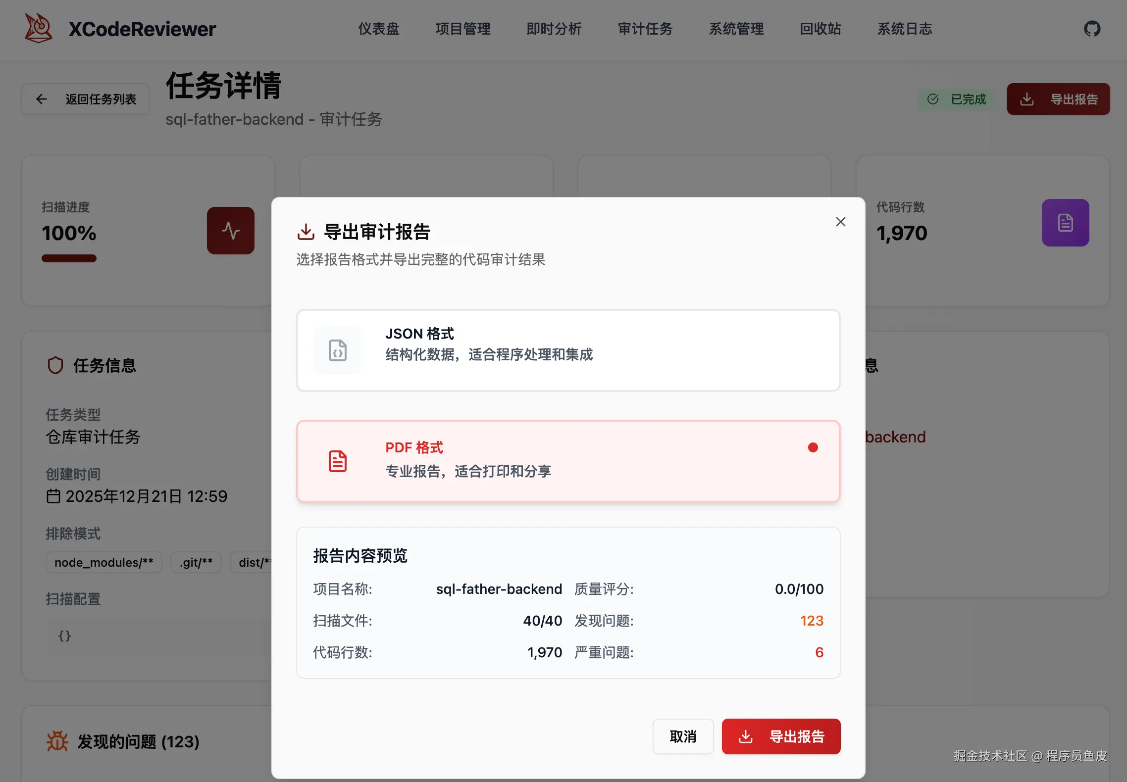 审计完成后,还可以直接导出报告: