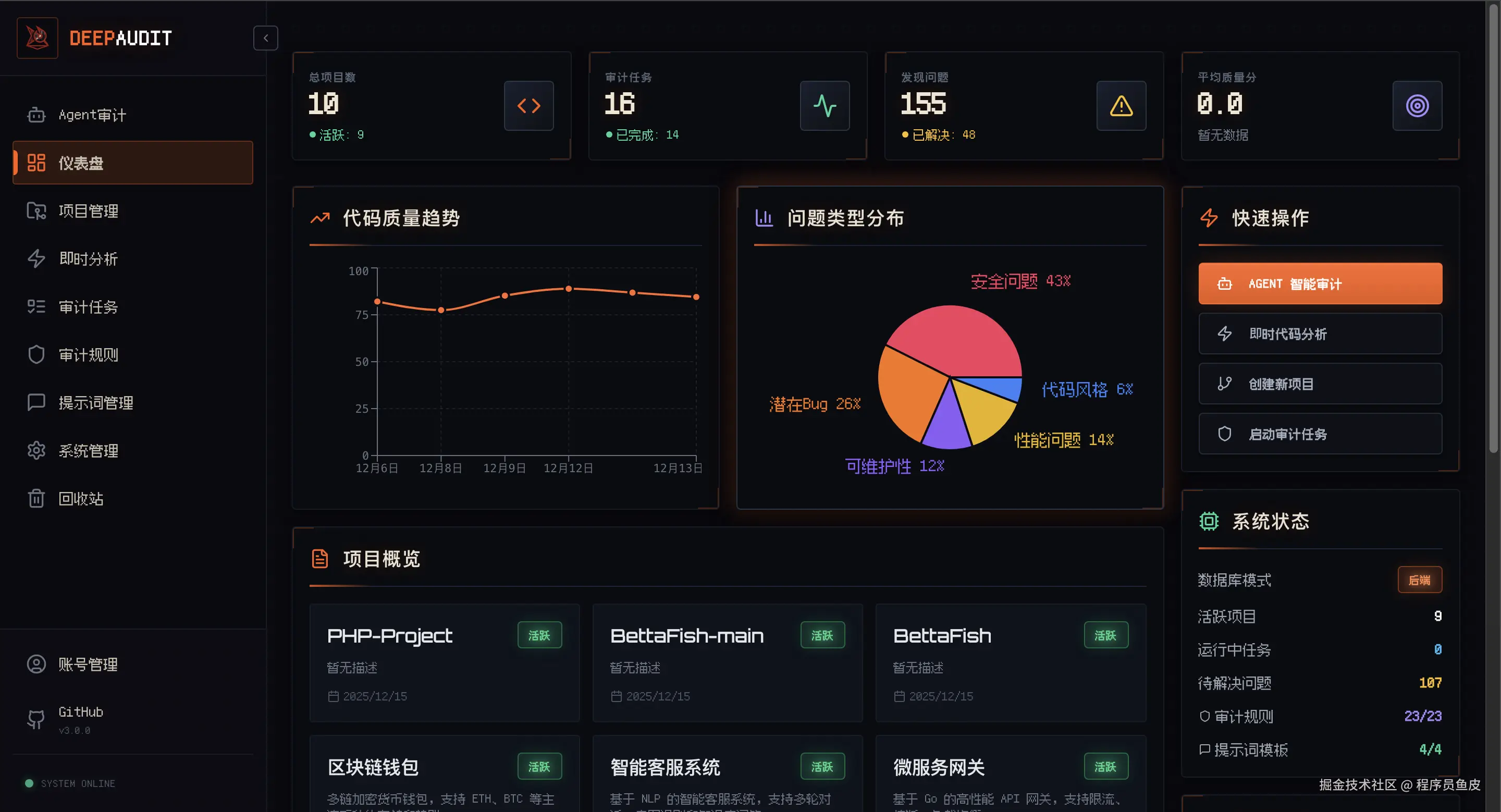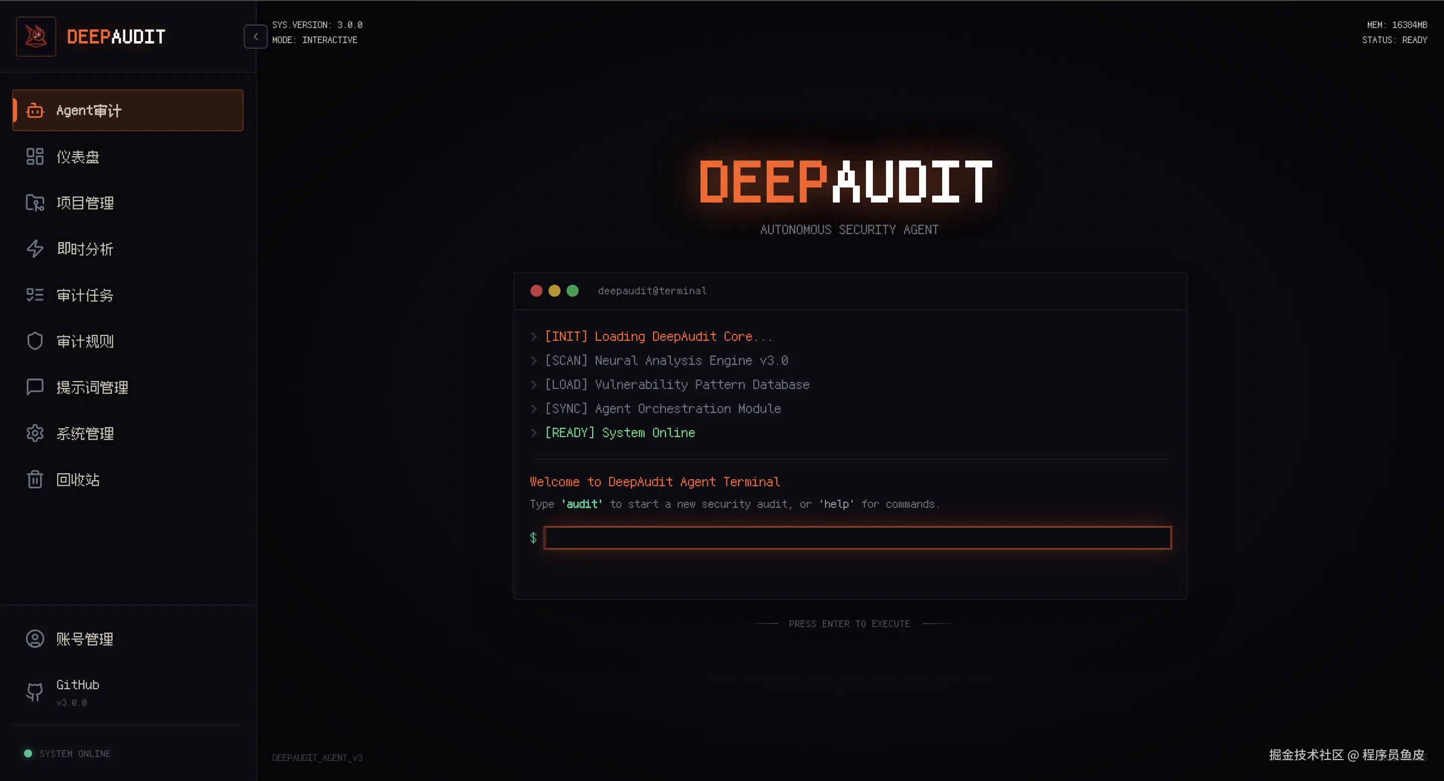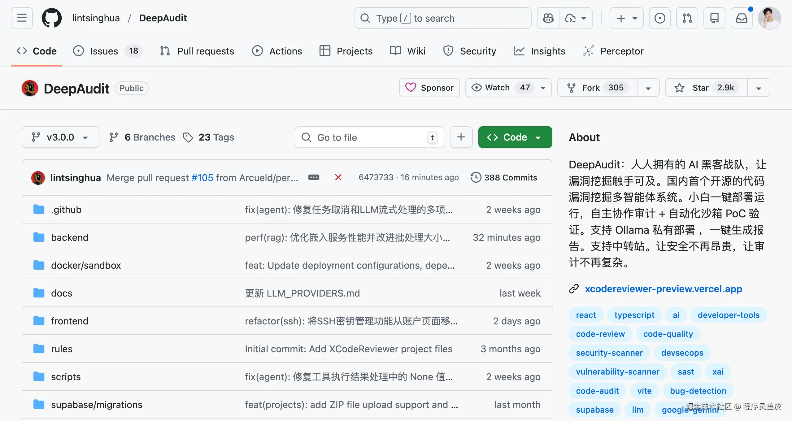大家好,俺是程序员鱼皮。最近逛 GitHub 的时候,发现了一个挺有潜力的开源项目 —— DeepAudit,让 AI 帮你挖掘项目漏洞。