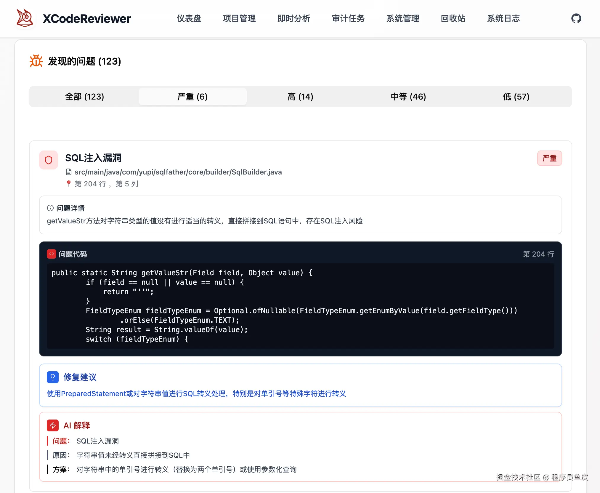 我去,竟然发现了 123 个问题?!