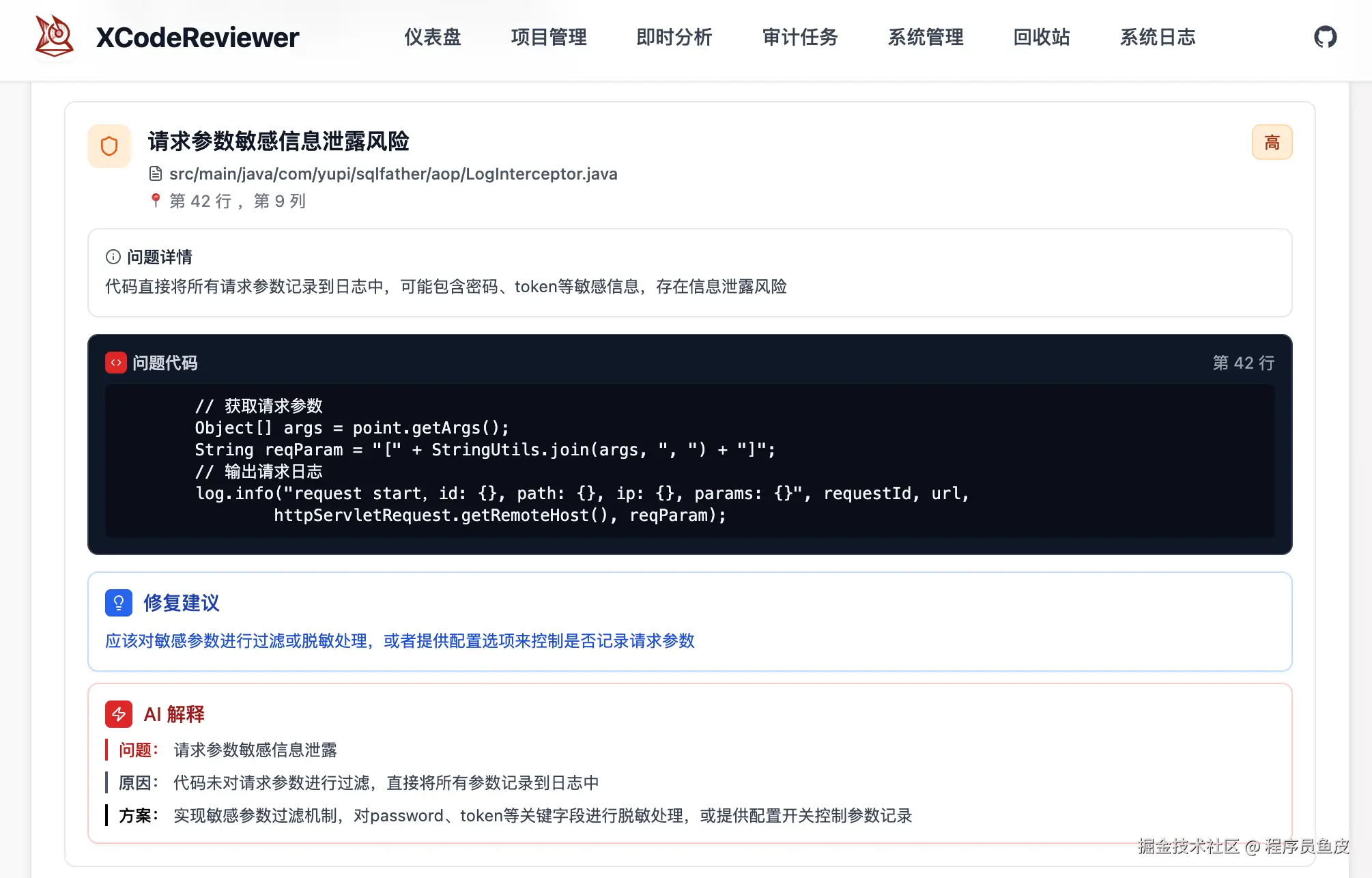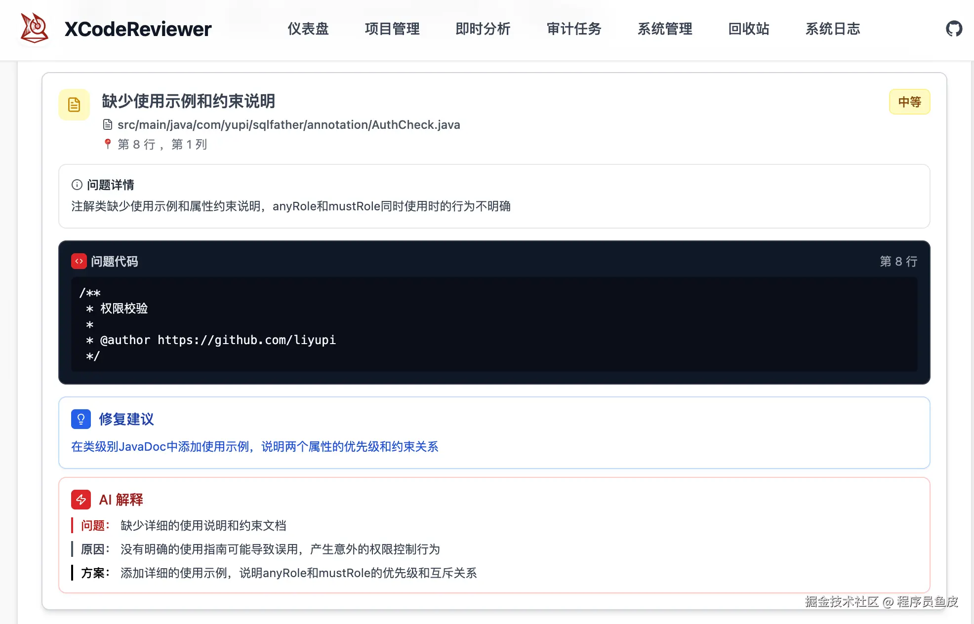 这是一个 AI 代码审计工具,能自动分析你的代码,找出潜在的安全漏洞和代码问题。