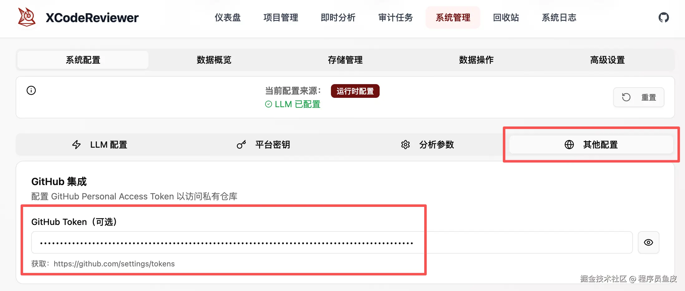 如果想直接导入并分析你在 GitHub 上的项目,而不是手动上传代码,那么还需要配置 GitHub Token,让工具能够读取到你的仓库代码。