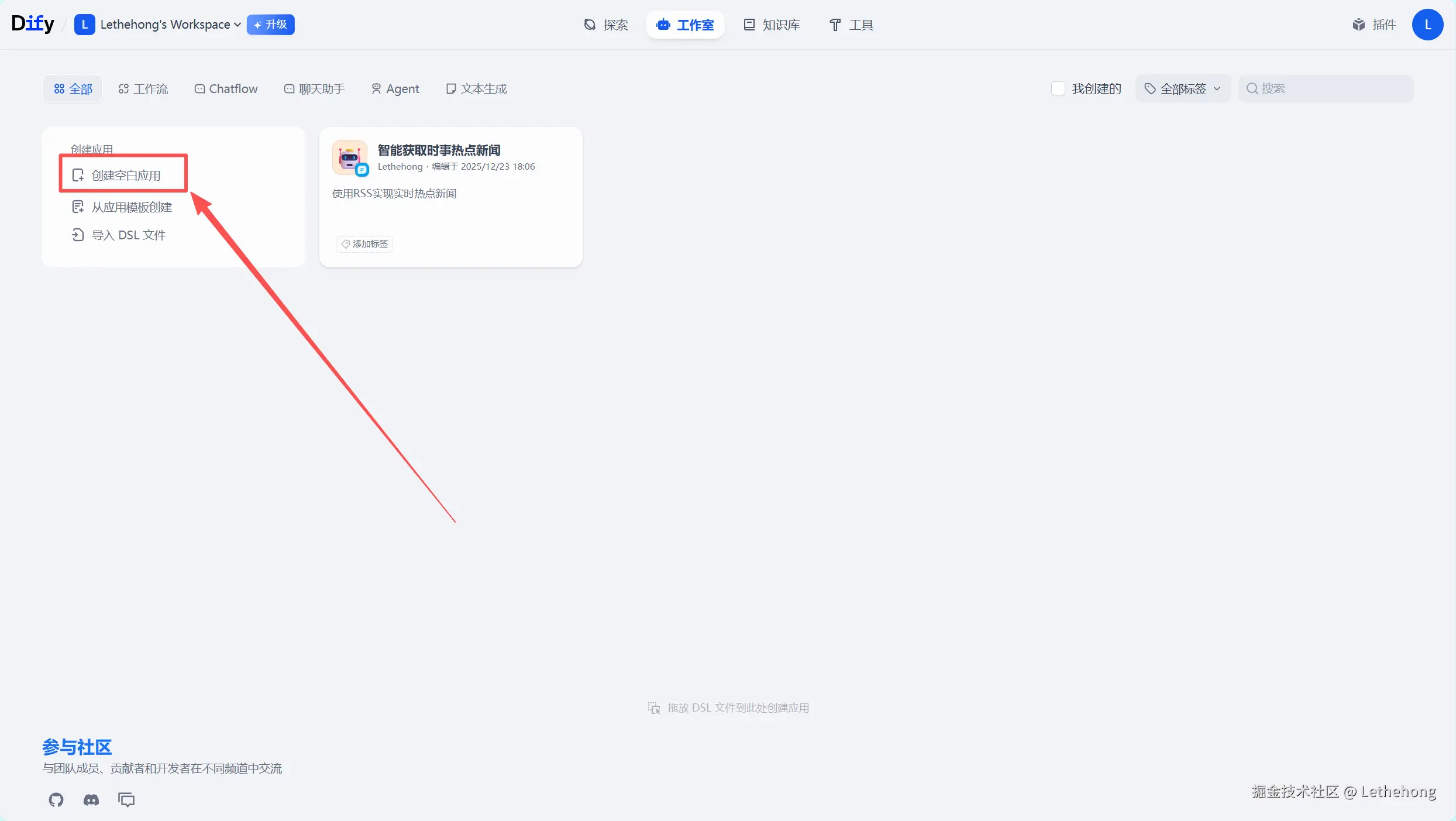 打开 Studio → 在窗口底部点击 创建空白应用。