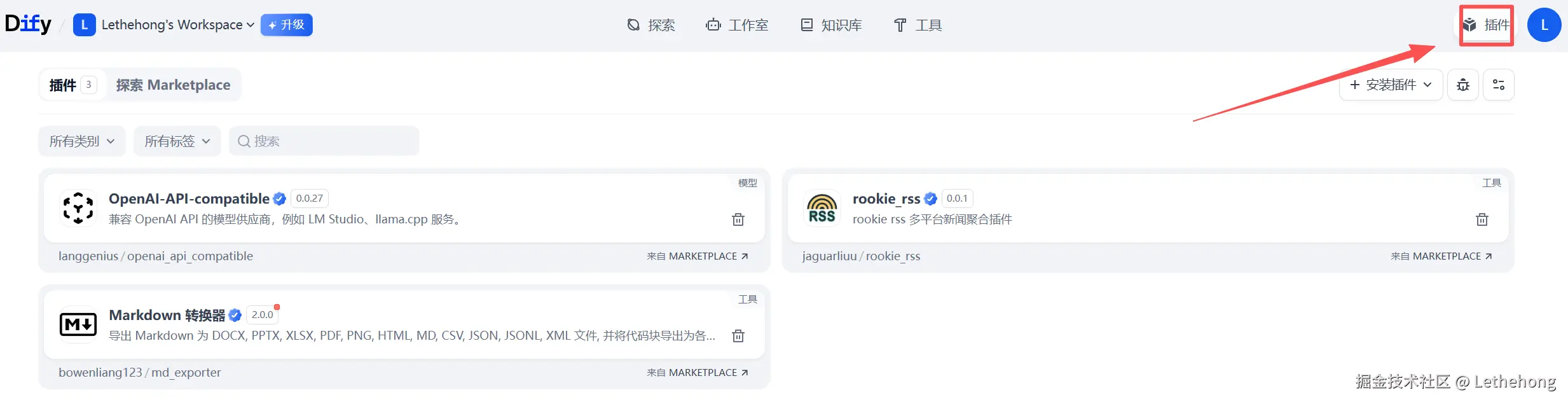 安装完成后,确认插件在「已安装」列表中可见。