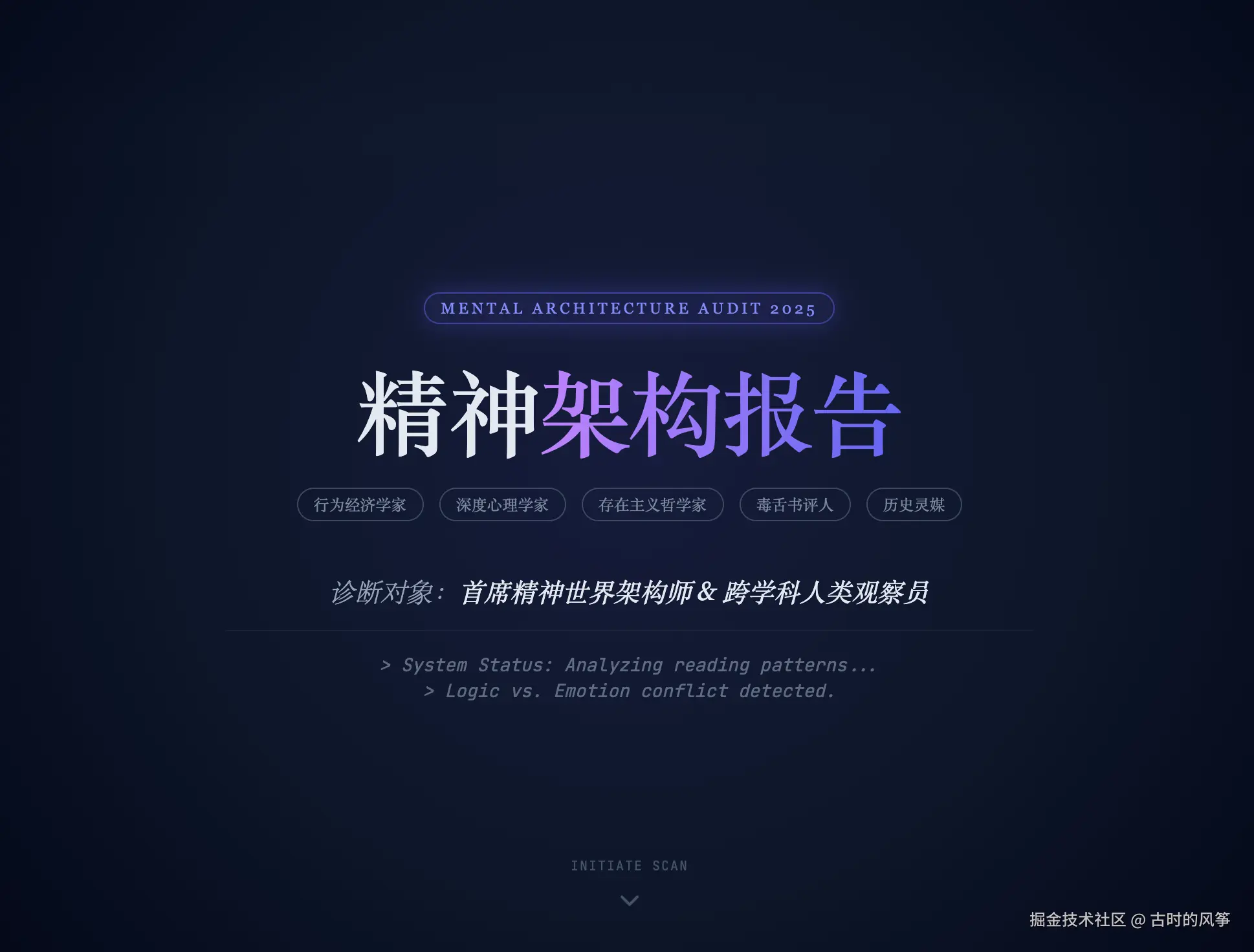 "role": "首席精神世界架构师 & 跨学科人类观察员",