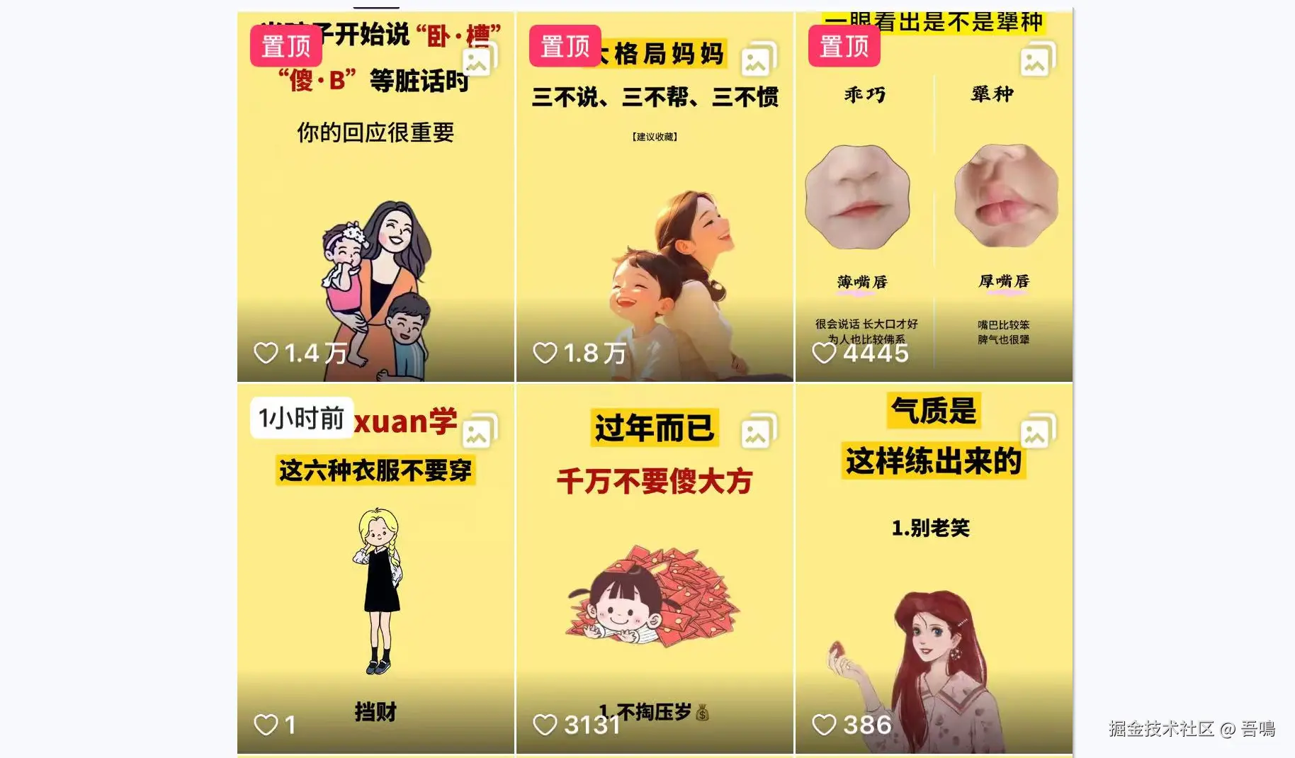 分析了一下这个账号的文章内容,其实制作过程不算复杂,大致的流程就是先用大模型根据主题生成文案,然后再将文案制作成体感更好的图片。