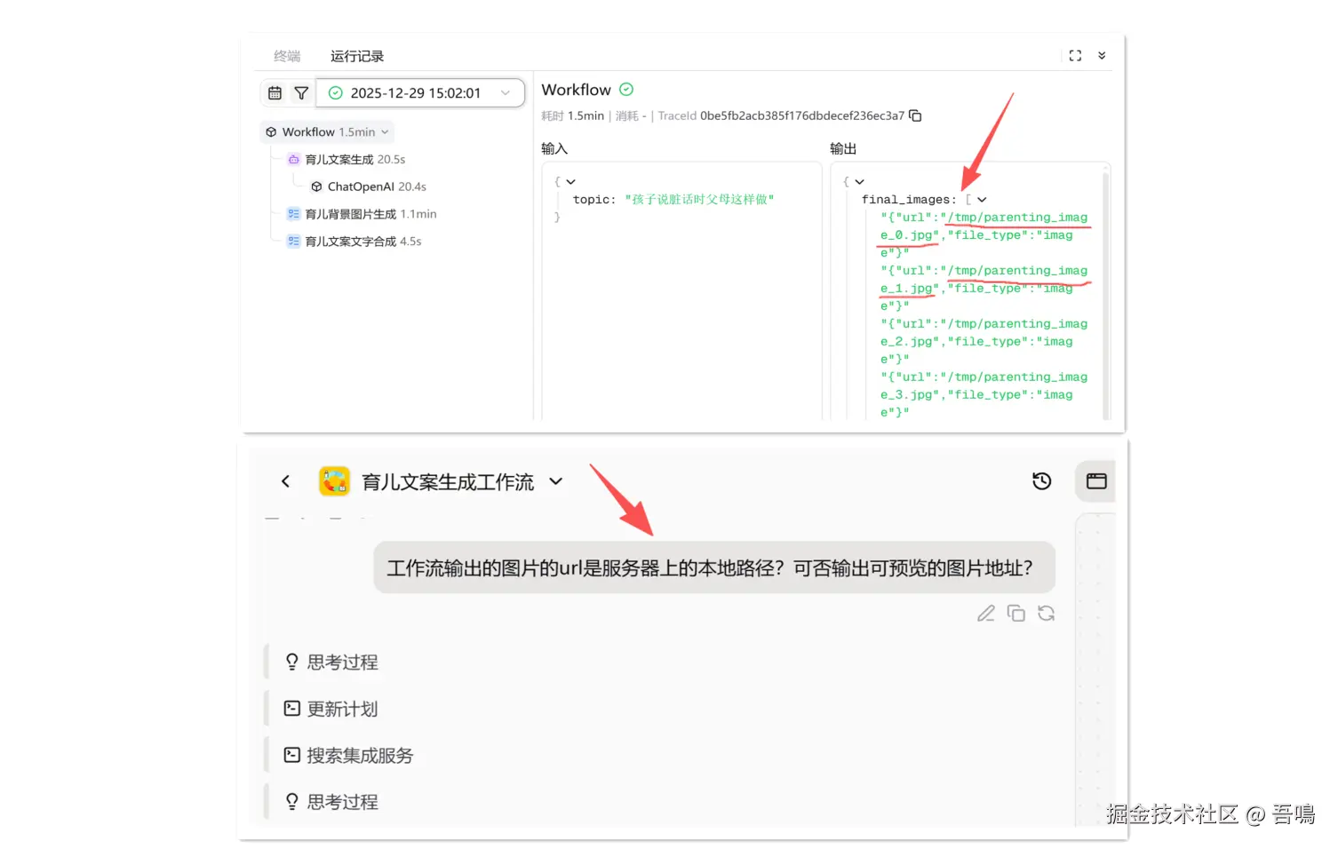 过程不会那么顺利,这点需要有预期,第一次执行好之后,我发现它给我输入的图片地址居然是本地电脑上的地址,没法预览查看。