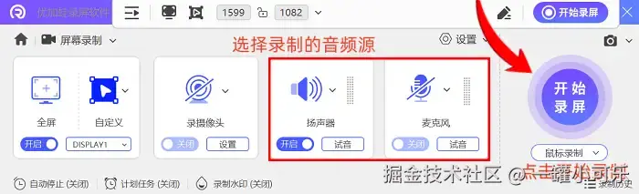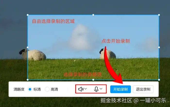 用它录屏最有趣的地方在于,录屏期间能实时编辑,大家可以任意添加文字、进行涂鸦,让导出的内容更具丰富度。操作步骤:选择录制模式后,调整录制区域和音频输入设置,点击 【开始录制】 。
