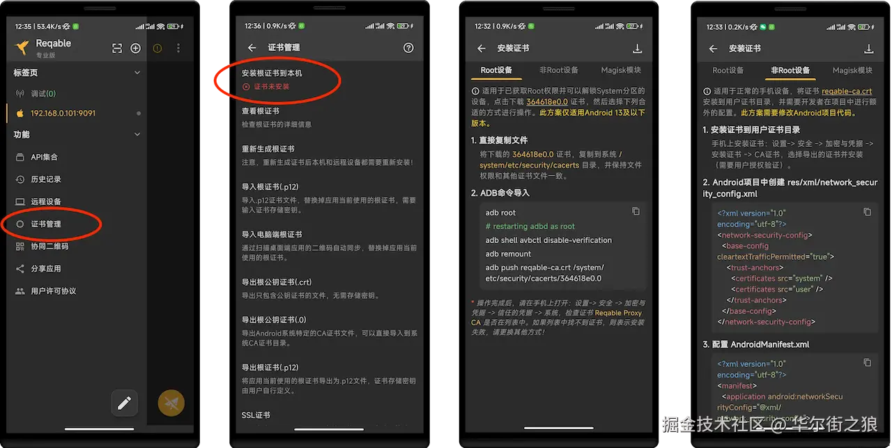 - 自动同步电脑根证书到手机,方便后续安装证书。