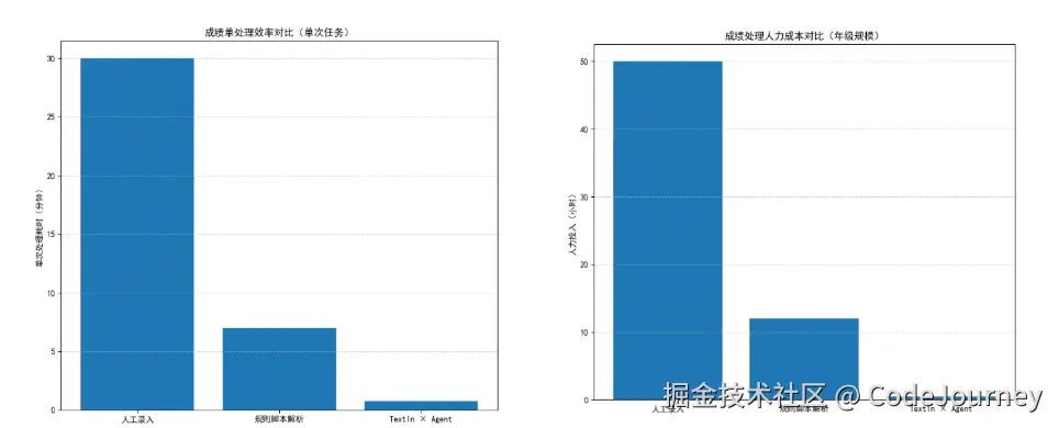 在班级成绩单多维度分析智能体正式落地之前,成绩处理通常依赖两种方式:人工录入或基于规则的脚本解析。这两种方案在小规模、模板固定的场景下尚可勉强运作,但在真实教学环境中,随着成绩单数量、来源和格式的持续增长,其效率与成本问题愈发突出。