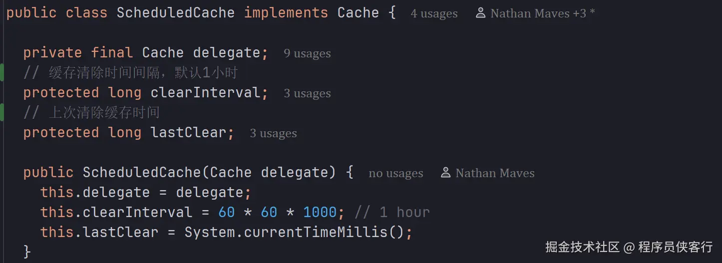 cache = new ScheduledCache(cache); // 配置了clearInterval时