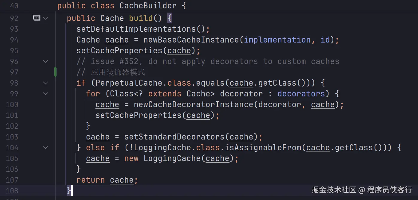 - org.apache.ibatis.mapping.CacheBuilder#build中,应用装饰模式