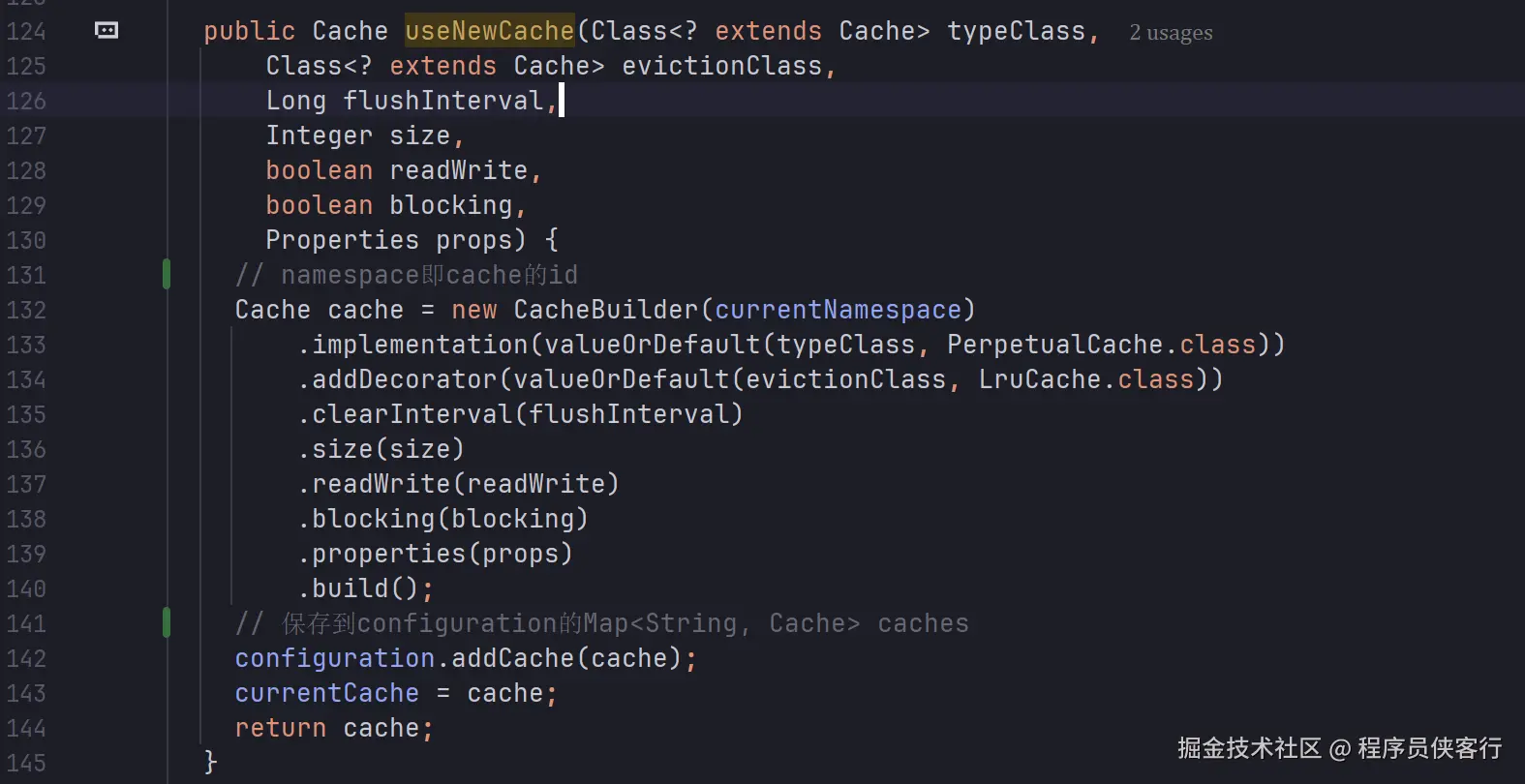 - MyBatis 会将Mapper文件的namespace作为cache id,来创建Cache实例;