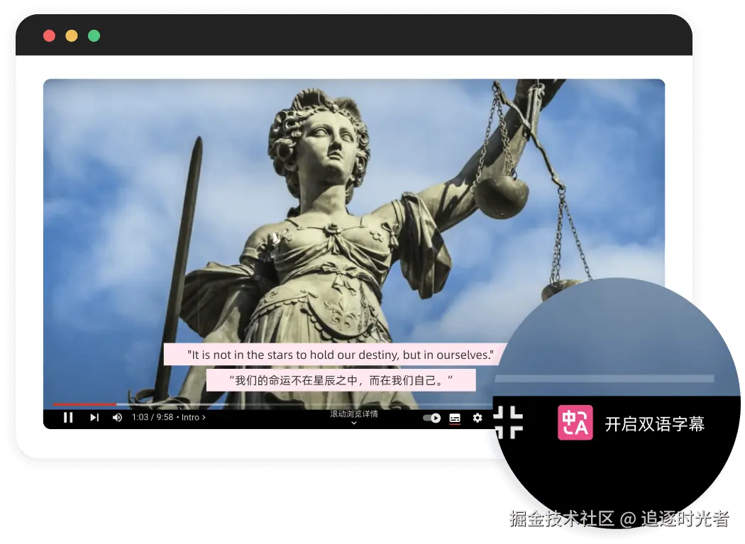 沉浸式翻译支持100多个国外主流视频网站的双语实时字幕功能。