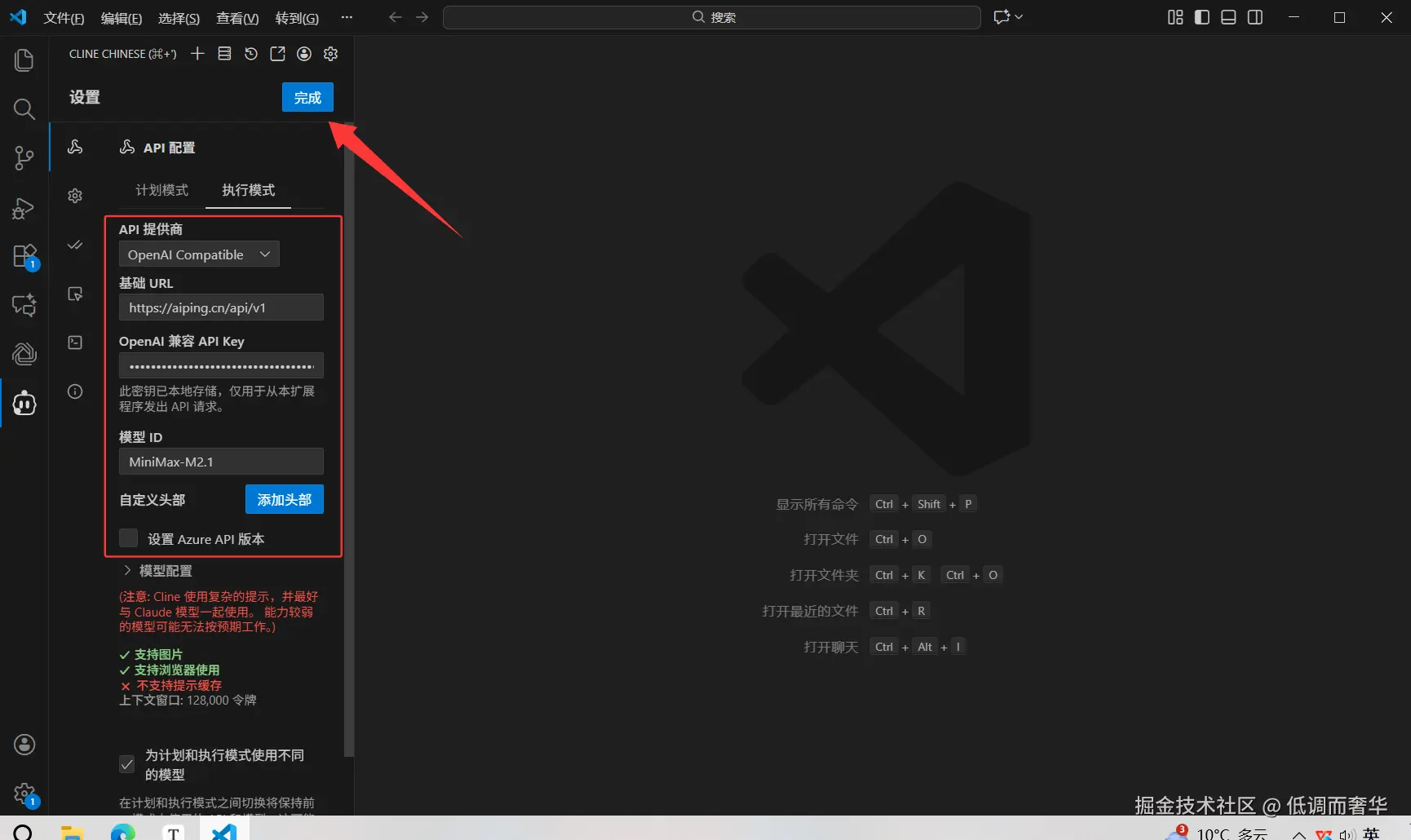 - API Provider 选择 “OpenAI Compatible”