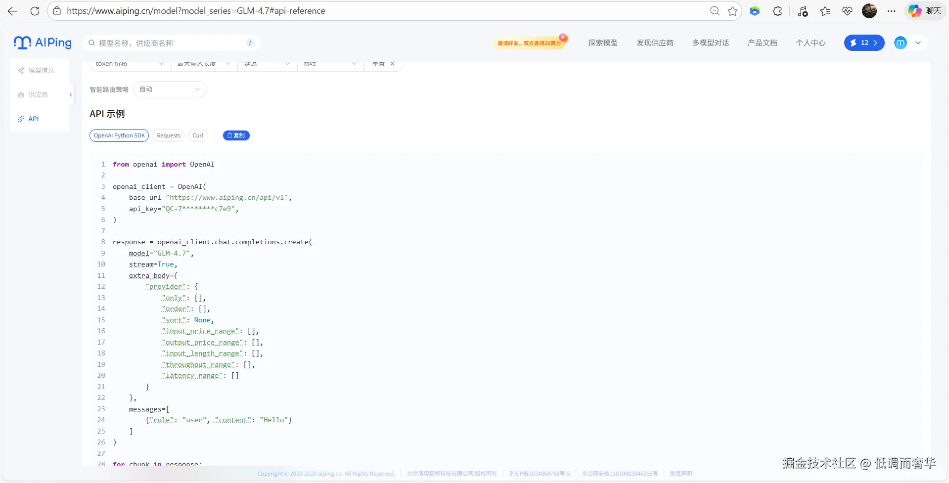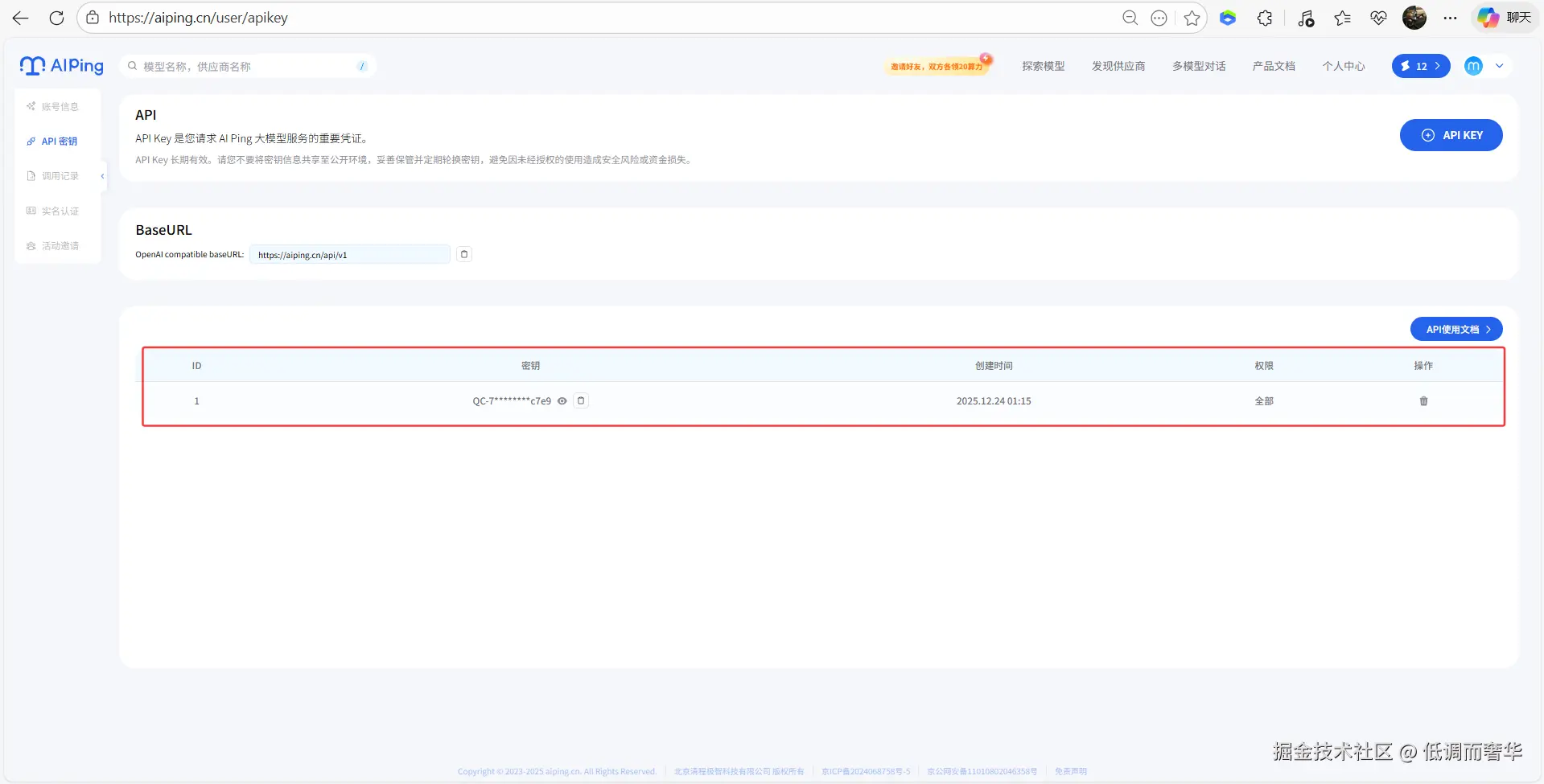 2、AI Ping个人中心获取API Key