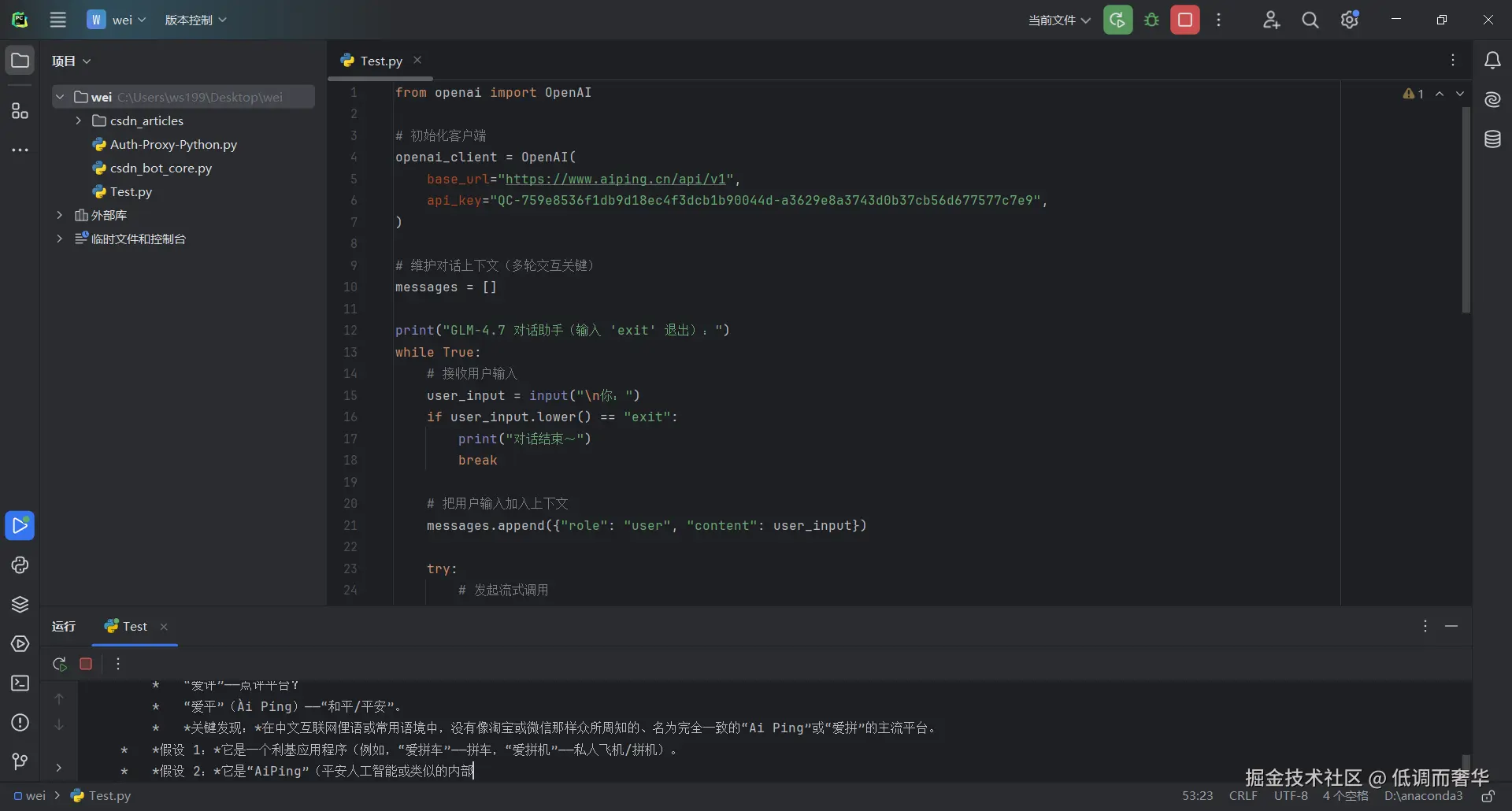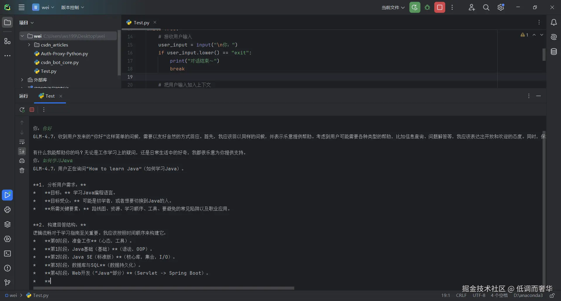 print("GLM-4.7 对话助手(输入 'exit' 退出):")