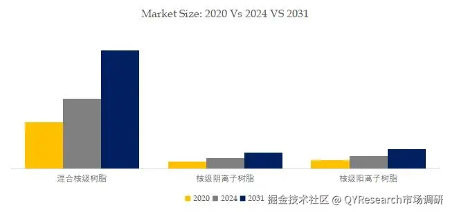就产品类型而言,目前混合核级树脂是最主要的细分产品,占据大约74.8%的份额。