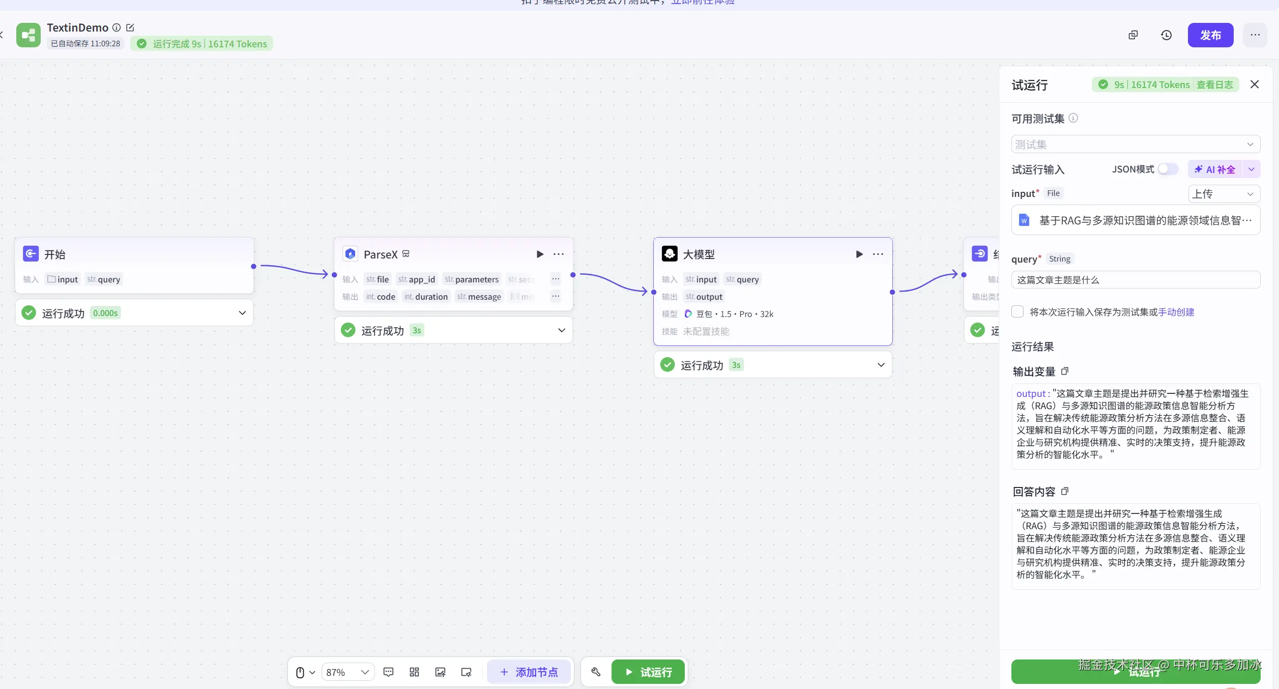 运行效果如下,通过 TextIn 的赋能,我们的 Agent 在处理复杂文档时的性能实现了本质飞跃,有效解决了 Agent 的文档感知瓶颈: