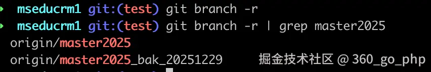 4. 查看远程分支git branch -r,筛选远程分支git branch -r | grep master2025