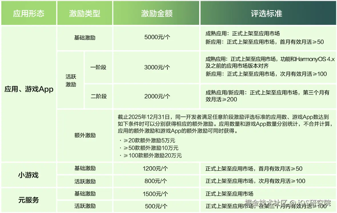 鸿蒙应用开发者激励计划2025,是由华为发起的开发者支持项目,旨在通过提供现金激励,鼓励开发者参与鸿蒙应用、游戏(含游戏App和小游戏,以下如无特指均使用“游戏”统一描述)、元服务的开发,以推动鸿蒙生态的建设和繁荣发展。