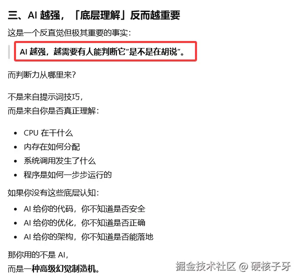 那什么是 coder 的主体能力? 是计算机行业的广度认知+深度功底。 如果没有广度,即便有 AI,