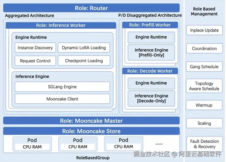 本文旨在阐明如何将 Mooncake Store 作为 RBG 编排下 SGLang PD 分离推理服务的补充角色,系统化实现生产级 KVCache 外置能力。