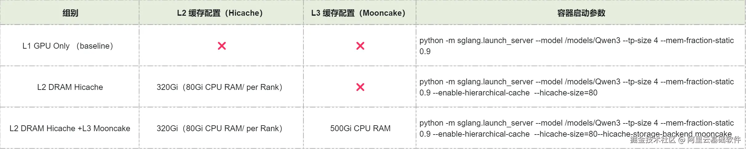 - L3 Mooncake 缓存:命中率进一步跃升,平均 TTFT 降至 2.58s(↓56.3%) ,P90 大幅改善至 6.97s(↓42.7%) ,InputToken 吞吐提升至 15022.80 token/s(↑49.41%)。