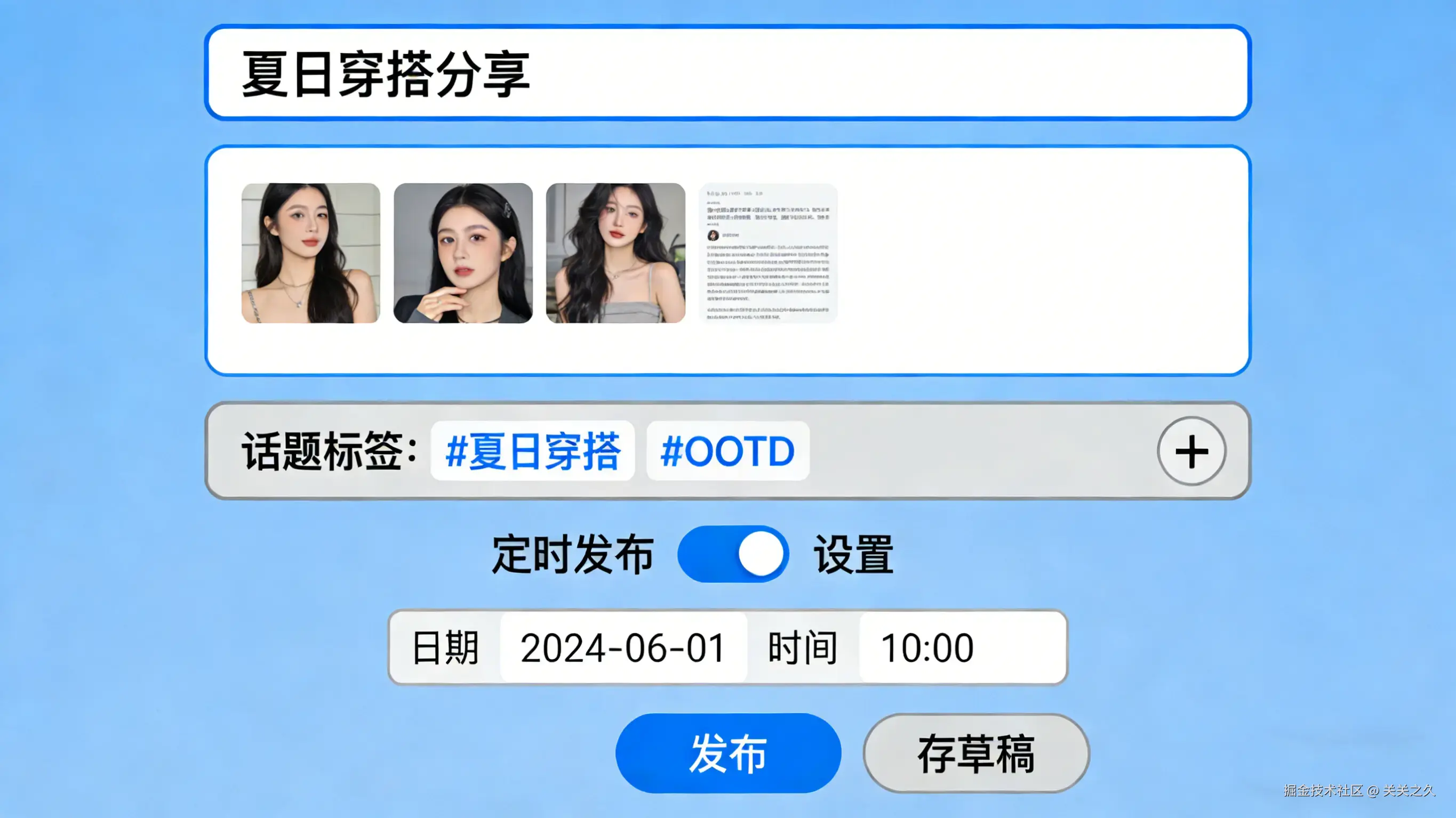 比如你创作完一篇穿搭笔记,不用再单独复制到小红书后台排版发布,用okbob助手直接编辑好格式,一键就能发布成功,还能同步到其他社交平台,单条笔记的发布时间能从15分钟缩短到3分钟。