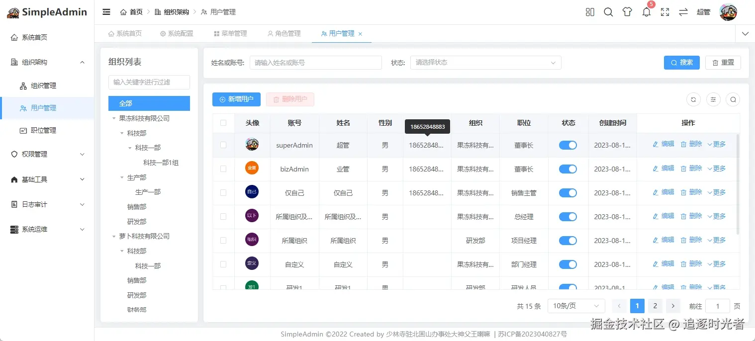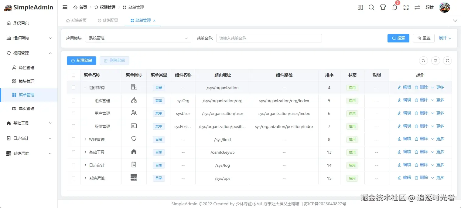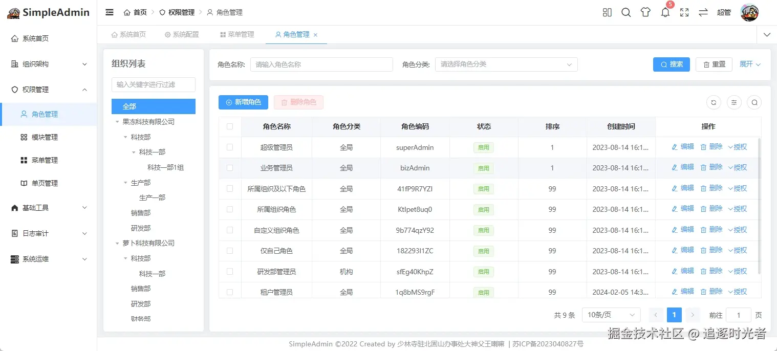SimpleAdmin是一个小而美的通用业务型后台管理系统,专为解决开发过程中的痛点难点而生。Vue3+Vite+Vuex+JS,并在此基础上增加更人性化功能,后端基于.NET6/7+Furion,ORM采用Sqlsugar+单例模式,插件式开发。采用RBAC+多机构的权限管理模式,实现全网最灵活的接口级别数据权限控制,集成国密加解密,导入导出、导入导出、批量修改等常用插件。后端代码注释覆盖率>90%,并配备超牛皮的代码生成器和超详细的手摸手教学文档,非常适合二次开发。