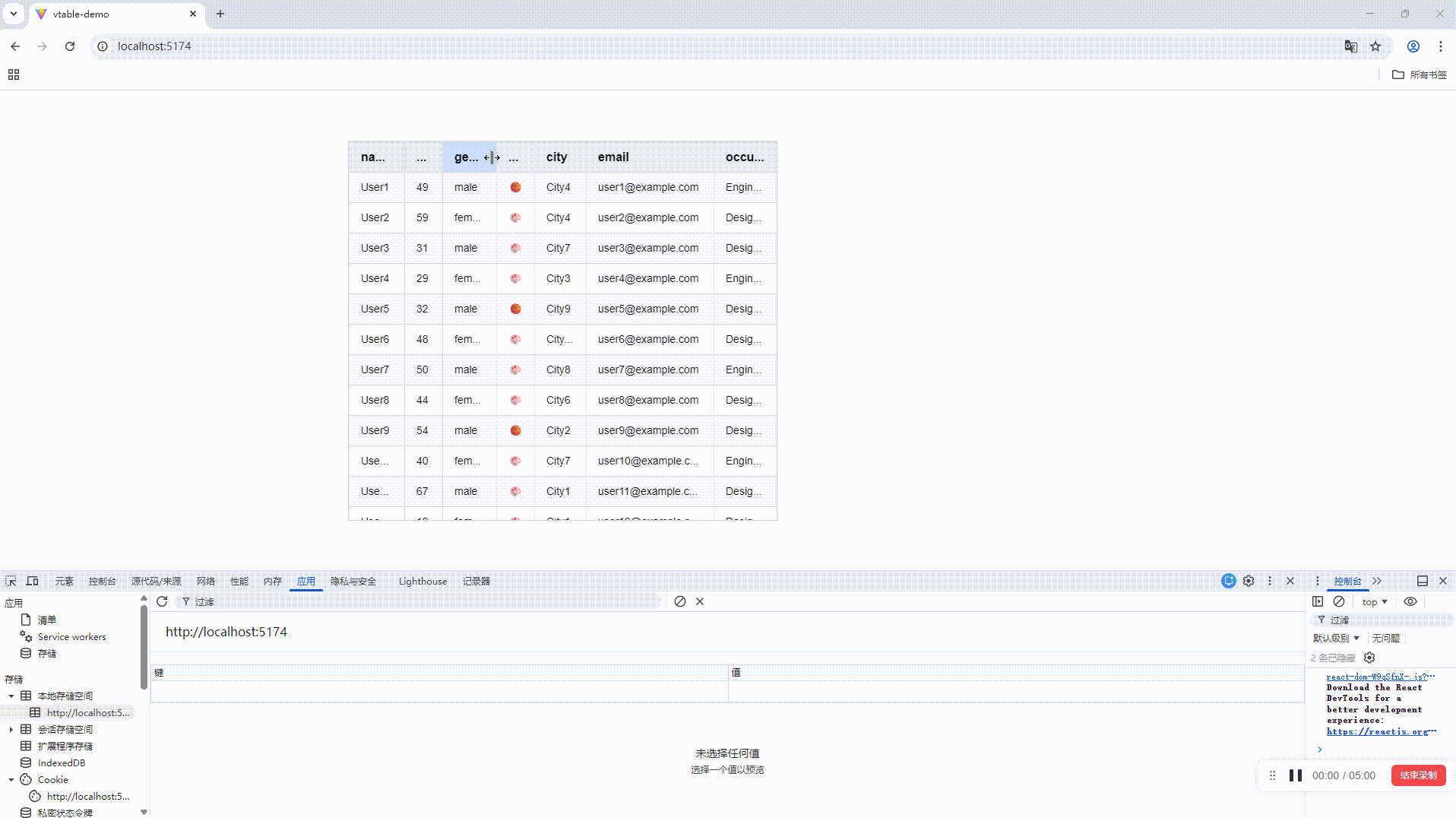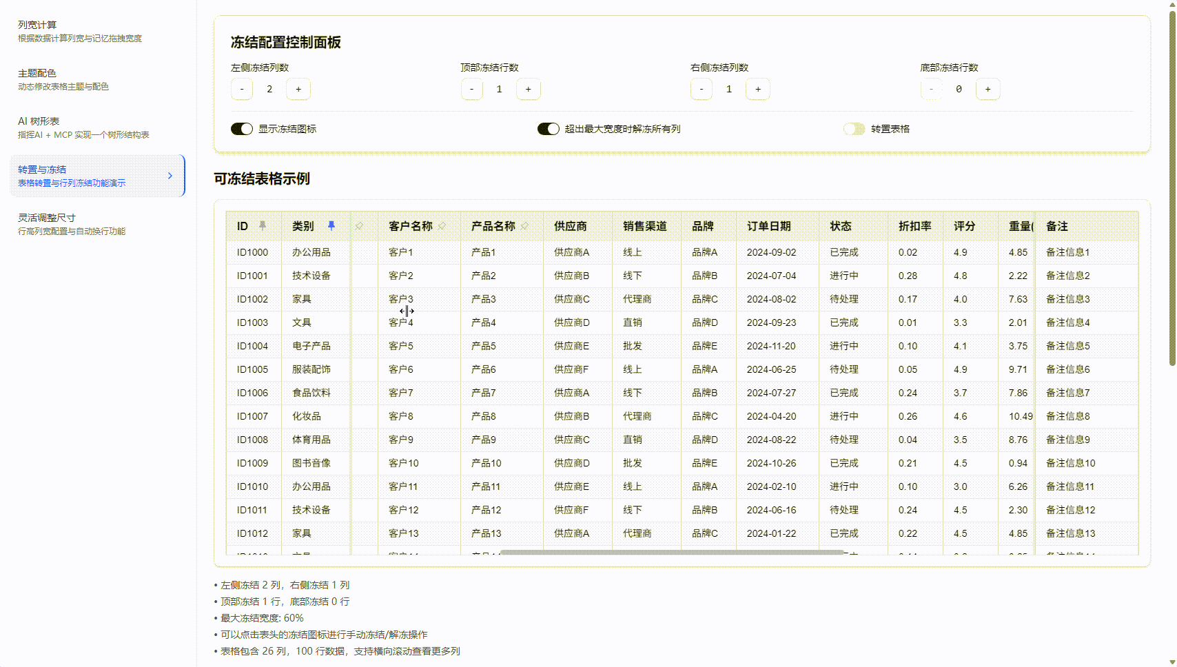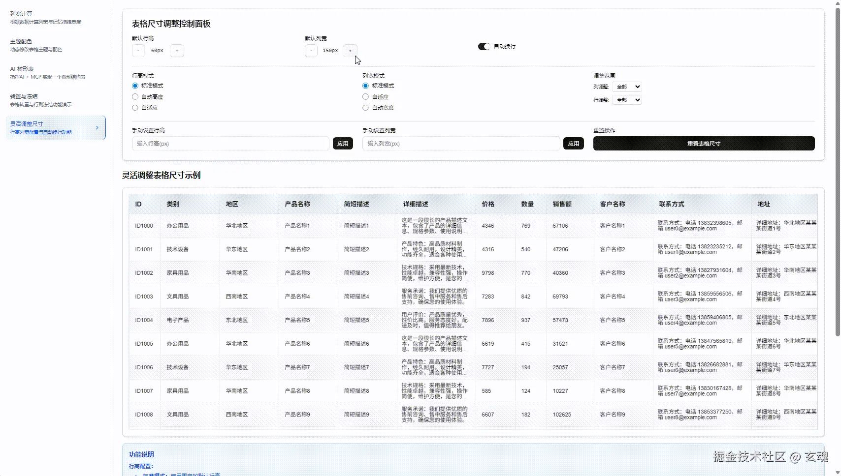 用户自定义拖拽:允许用户手动拖动列边界调整列宽。拖拽后的宽度将在本地存储(localStorage)中保存,有效提升用户体验。