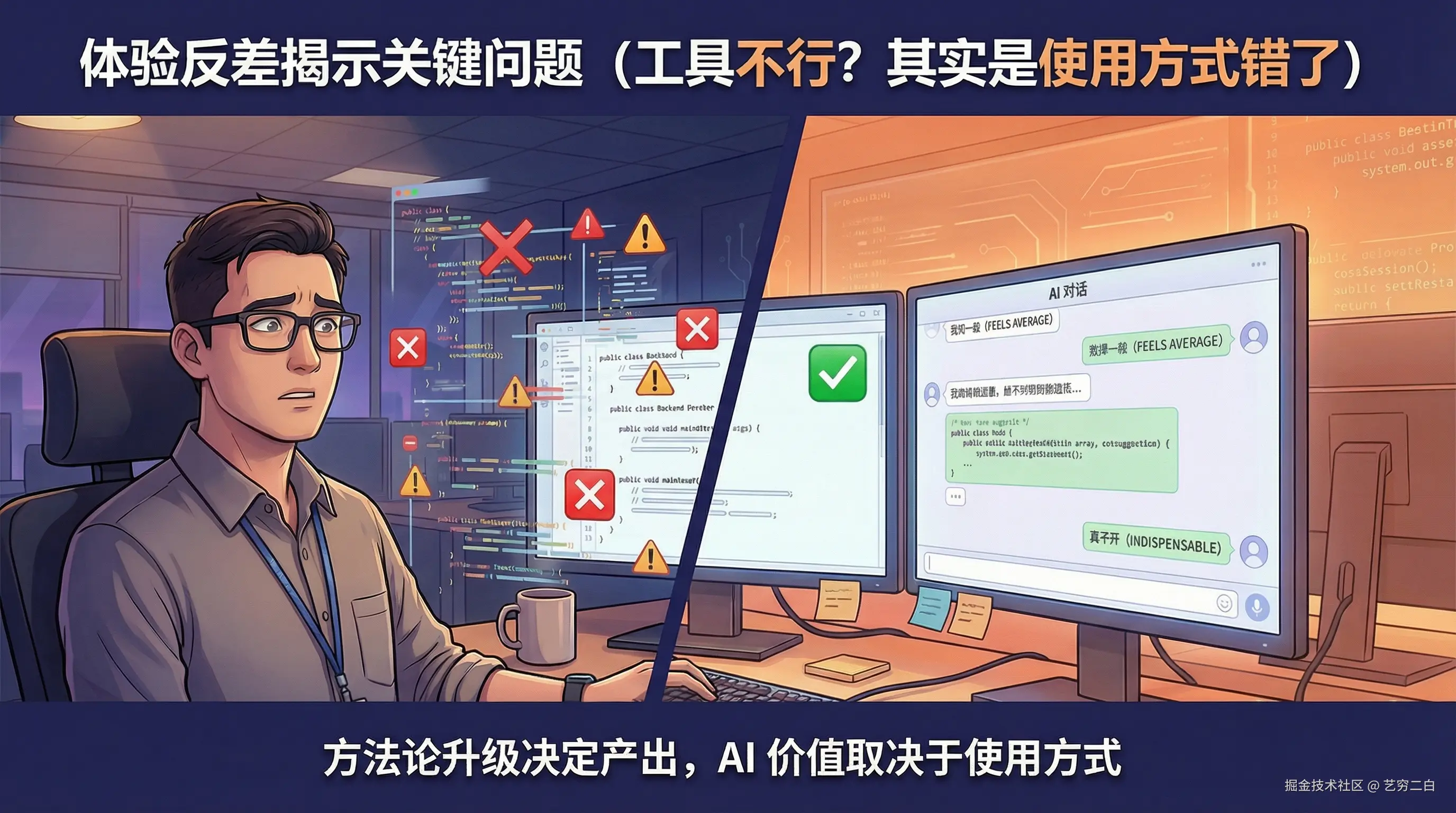 转折发生在2025年初。一个同事在群里分享了他用Claude完成一个复杂业务模块的全过程录屏。我震惊了——不是因为AI写的代码多漂亮,而是他和AI协作的方式完全不是我之前那种"写个CRUD试试"的玩法。