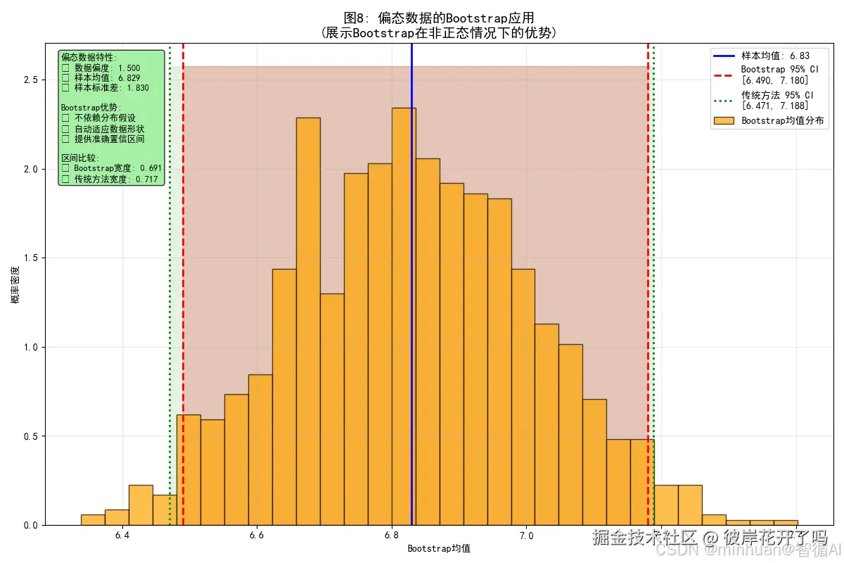 - 优势展示:突出Bootstrap不依赖分布假设的优点