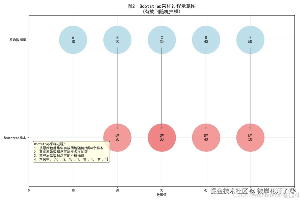 - 2. 进行Bootstrap采样(有放回抽样)生成多个Bootstrap样本。