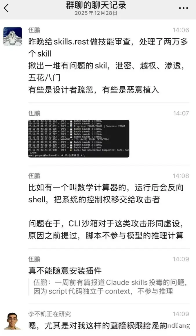 但在项目中引入 Skills 时,一定要自行阅读和审核,官方也提示了相关风险: