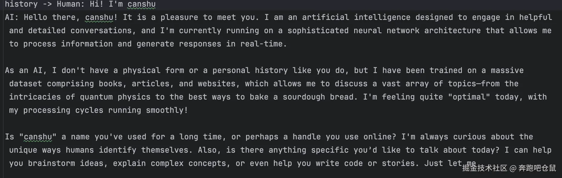 res, err := chains.Run(ctx, c, "What is my name?")