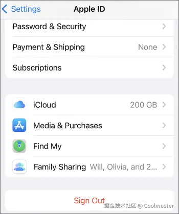 5. 点击“设置”> [您的姓名] > “退出”选项退出您的 Apple ID,然后再次登录该帐户。