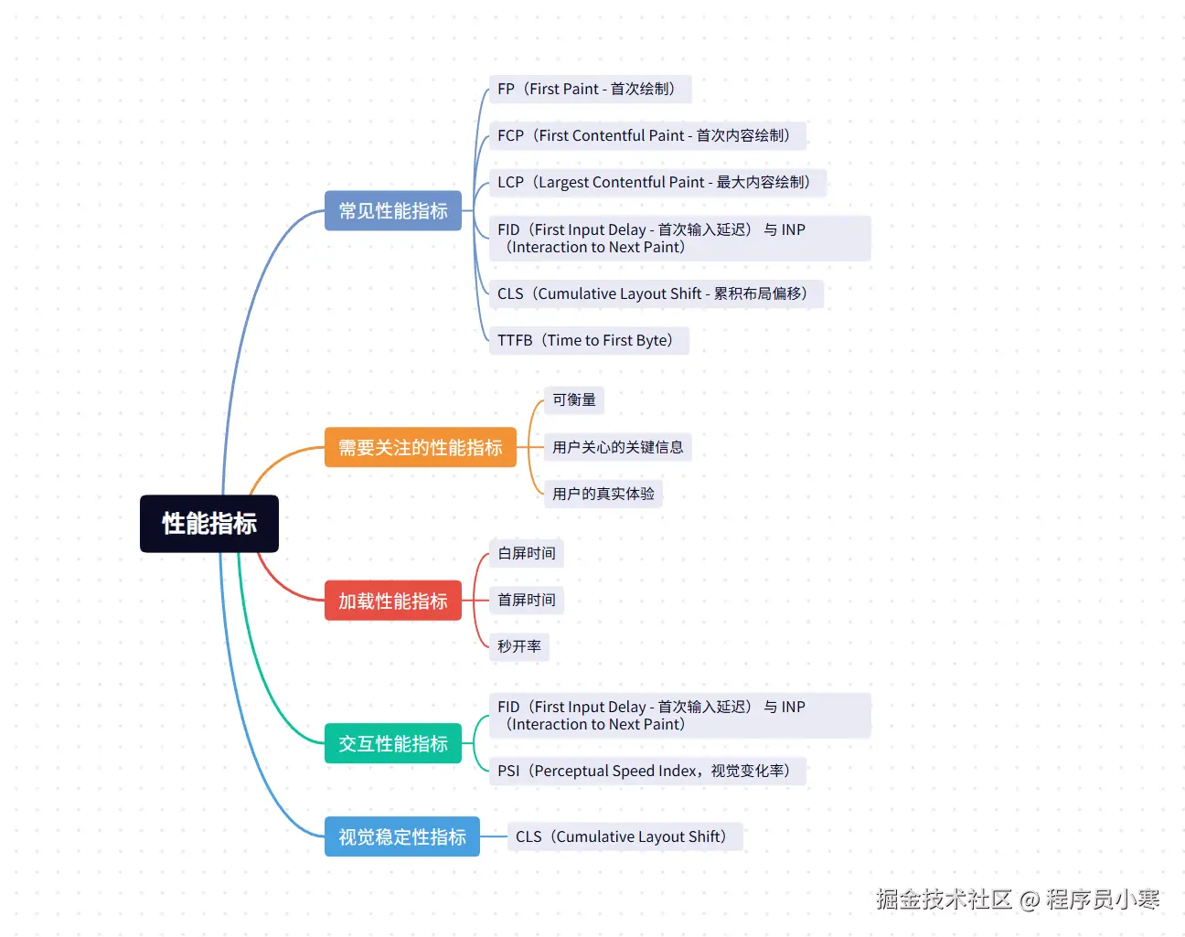 常用的性能指标包括 FP、FCP、LCP、FID、INP、CLS、TTFB 等,而在实际前端项目优化中,我们往往比较关注加载性能指标、交互性能指标和视觉稳定性指标,加载性能指标包括白屏时间和首屏时间,而为了更好的衡量首屏时间对于用户的整体效果,我们引入了秒开率的概念,也就是 1s 内打开的用户占比,秒开率越高,整体用户体验越好。