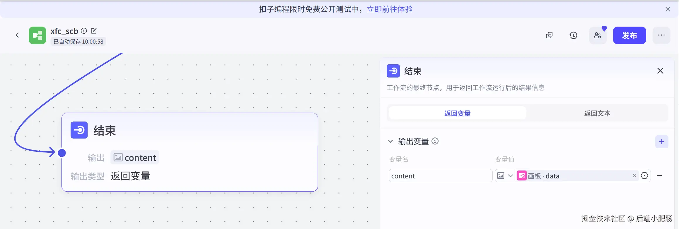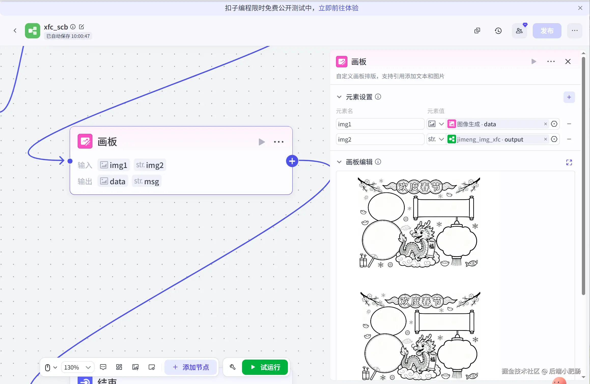 结束: 节点节点承接画板节点输出的图片数据,可直接下载结果图。