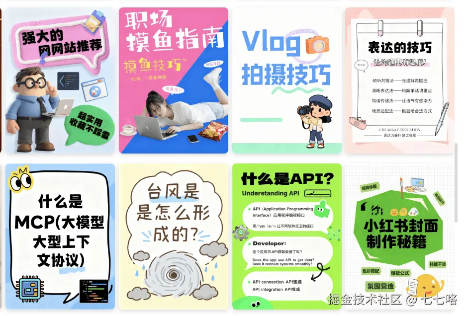 先给大家看一组火兔直接生成的小红书图文卡片,从内容整理、排版设计到风格统一,全程不用手动操作,批量生成效率超高,完全满足小红书平台的审美要求。
