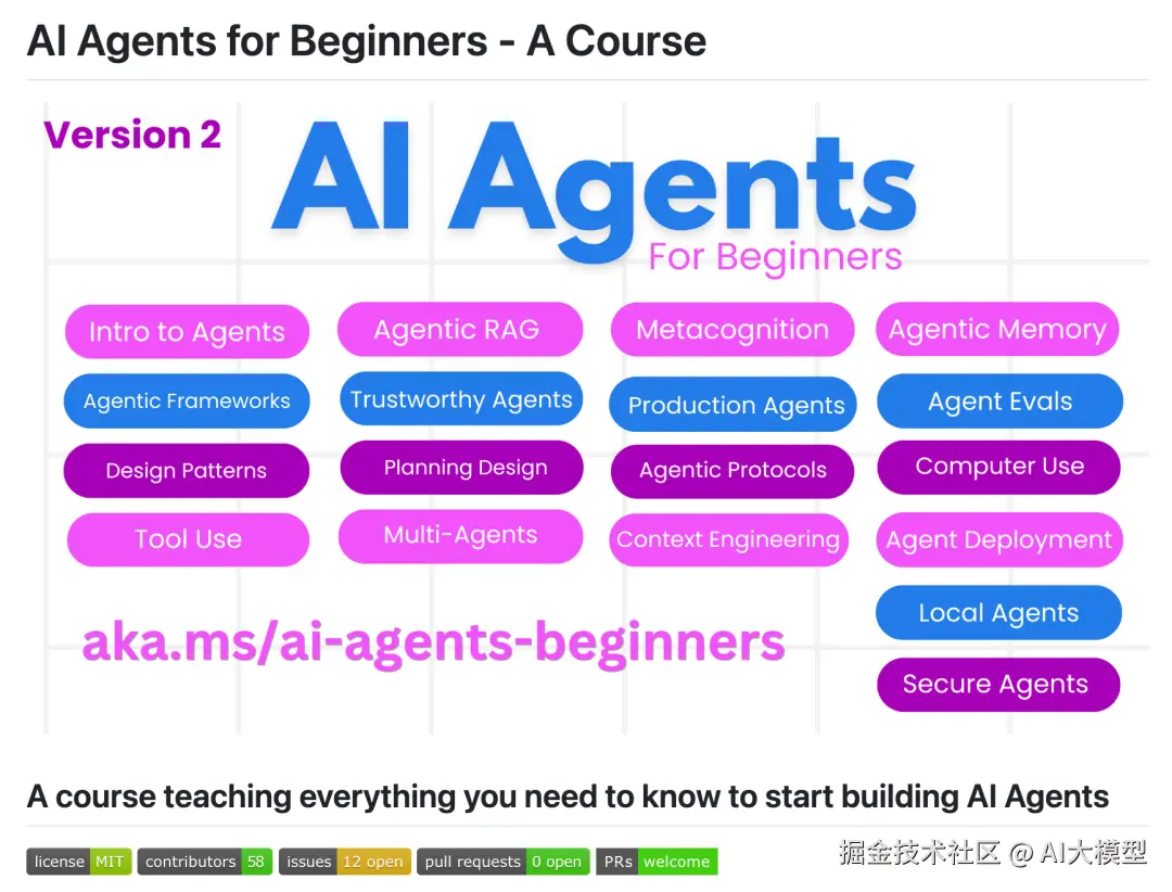 这是微软官方推出的一个入门级教程仓库,内容非常清晰,整套课程分为 11 个章节,手把手带你从零创建一个可运行的智能体。 每节课都很短小、易懂,而且都是实操型教学。你不用死记概念,跟着做就能一步步搭建出属于自己的小 Agent。