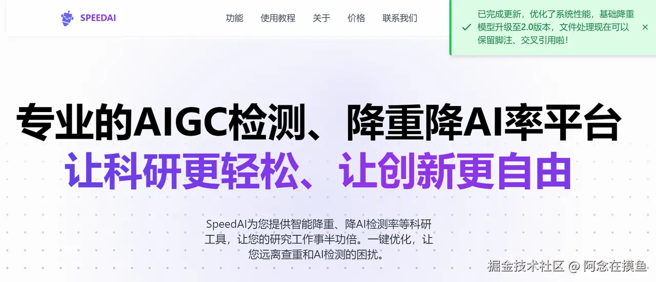 如果你的论文里全是复杂的公式,可以选这个降ai率工具。乱用工具的后果就是公式变成乱码,逻辑被改得面目全非。SpeedAI是专门针对理工科场景设计的。