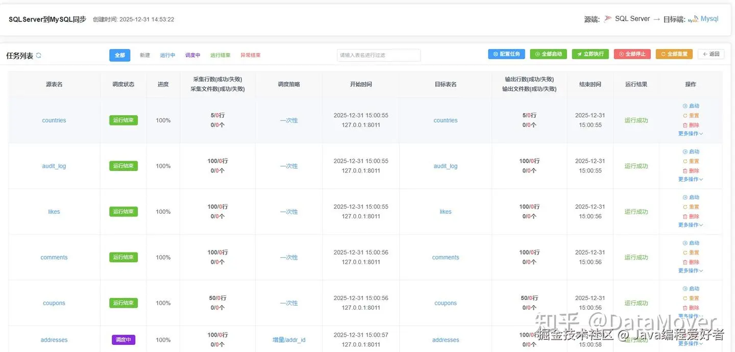 本文以 SQL Server → MySQL为例,展示了 DataMover 在异构数据源同步中的便捷性。