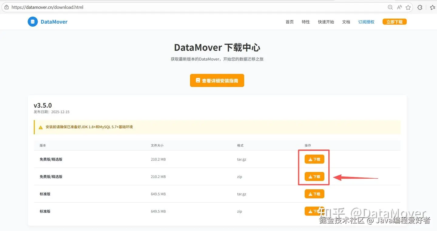 访问 DataMover 官网下载最新免费版,支持 Windows、Linux、macOS 系统: