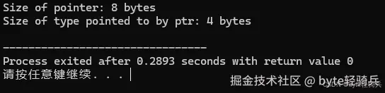 printf("Size of pointer: %zu bytes\n", sizeof(ptr));
