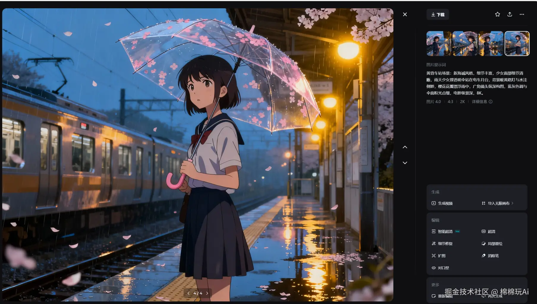 画面表现:视频展现了惊人的细节控制力。透明雨伞上的水珠折射、樱花飘落的物理轨迹都清晰可见,没有出现常见的杂乱感。