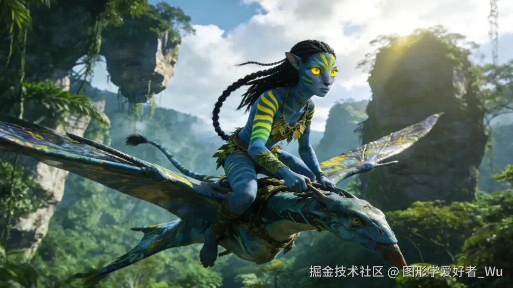 3D动画电影全流程依赖计算机图形学,比如《阿凡达》的纳美族人,通过 CG 建模 + 绑定 + 渲染实现